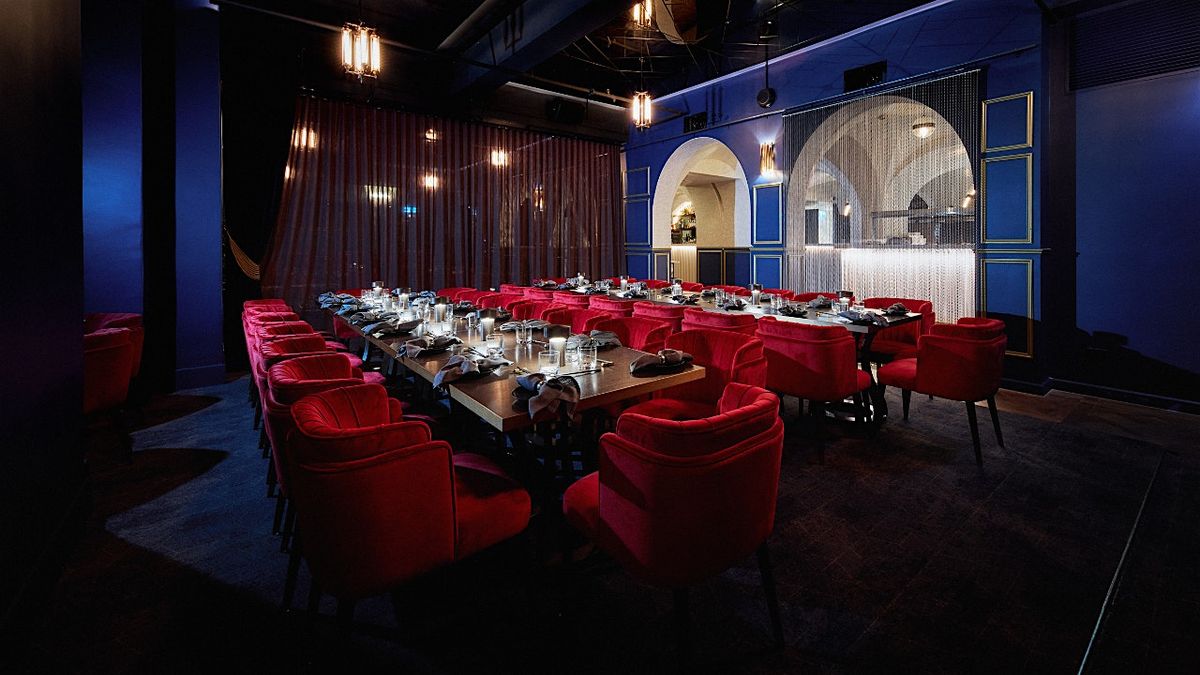 Hidden below street level, Boom Boom Room blends refined Japanese technique with a modern edge, serving beautifully curated sashimi, yakitori-style dishes and elevated shared plates. We’ll be seated privately in The Banker’s Lounge, surrounded by softly lit alcoves, stained glass details and views into the open kitchen — creating a setting that feels exclusive, immersive and effortlessly cool.