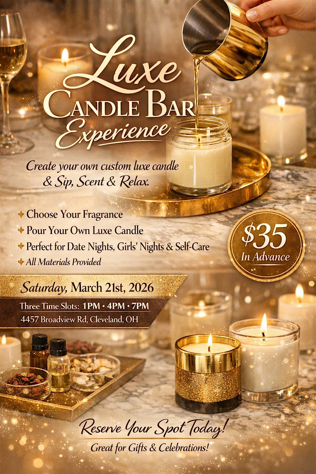Get ready to ignite your creativity at the Luxe Candle Bar Experience! Join us for an in-person event where you’ll craft your own stunning, scented candles. It’s all about fun vibes and making beautiful, cozy candles you’ll love. Perfect for a chill day out or a unique night with friends. Don’t miss the chance to mix your favorite scents and bring home a piece of luxury!