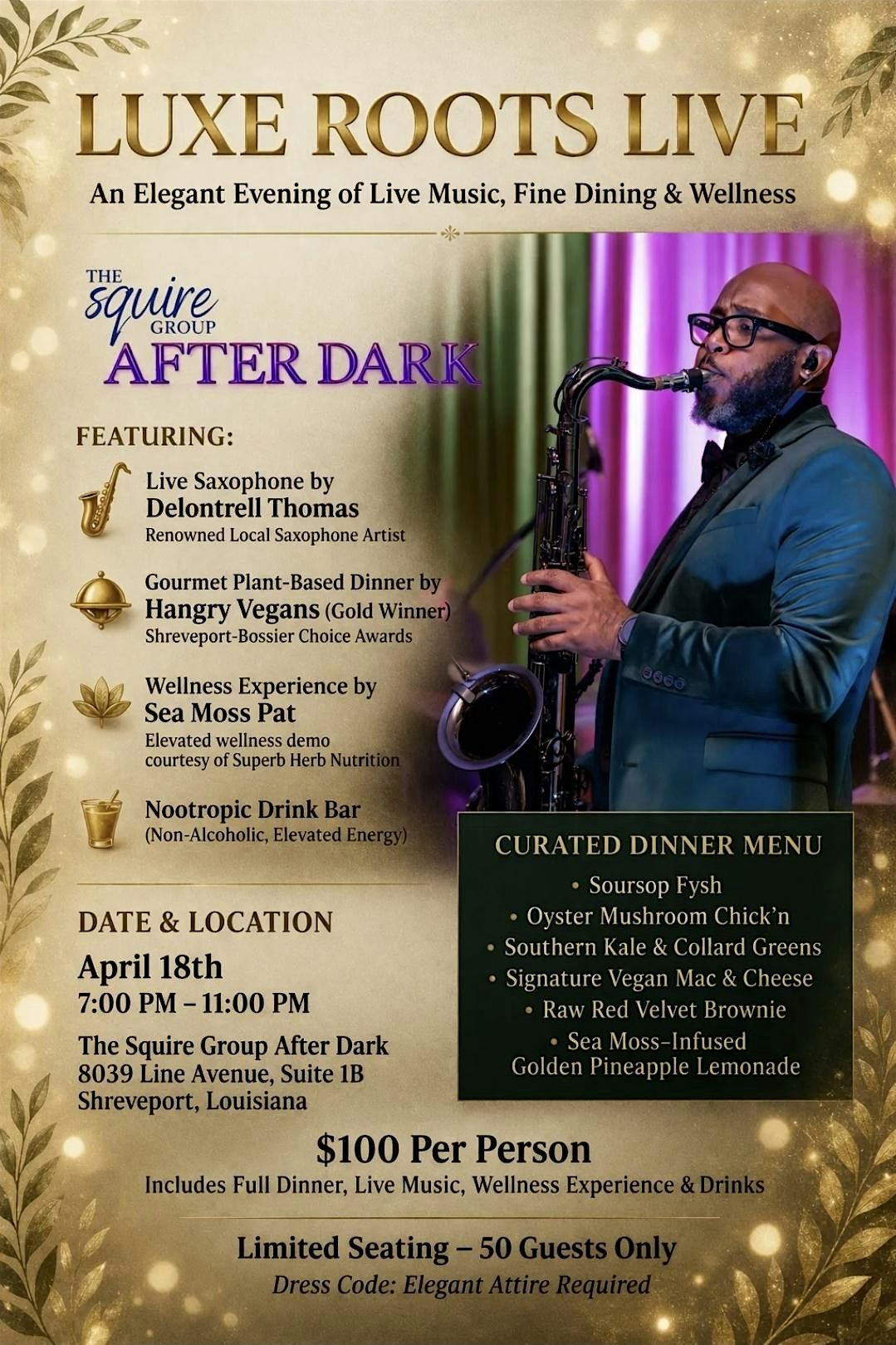Get ready to groove at Luxe Roots Live, where smooth jazz meets a touch of class! This in-person event promises a chill vibe, great tunes, and an unforgettable night. Whether you're a jazz lover, R&B lover, or just looking for a cool evening out, this is the place to be. Come enjoy the rhythm, the roots, and the lively atmosphere with friends old and new. Don't miss out on this jazzy journey – it's all about good music and good times!