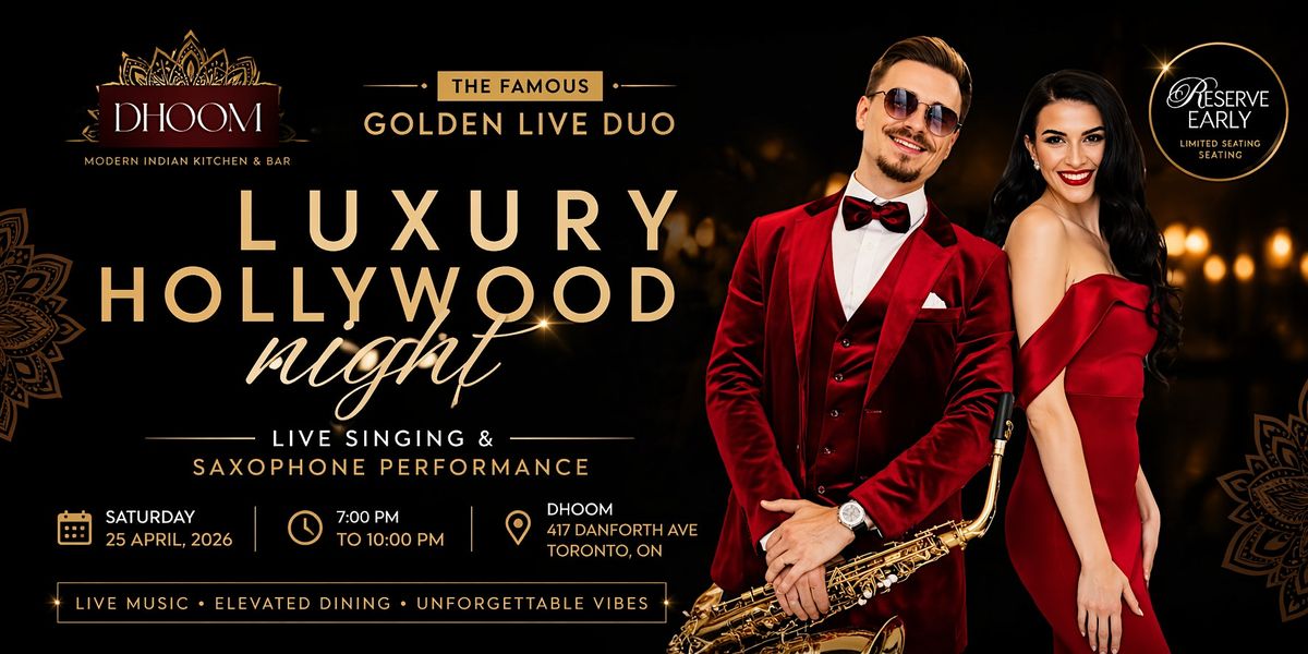 DHOOM presents Luxury Hollywood Night — an exclusive evening of live singing and saxophone performance by the renowned Golden Live Duo.
