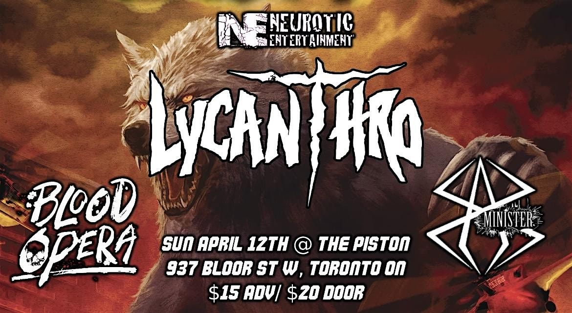 Lycanthro (Ottawa) w/ local favorites Blood Opera & AxMinister -SUN APRIL 12- THE PISTON 937 BLOOR ST WEST- DOORS 7:30, SHOW 8PM