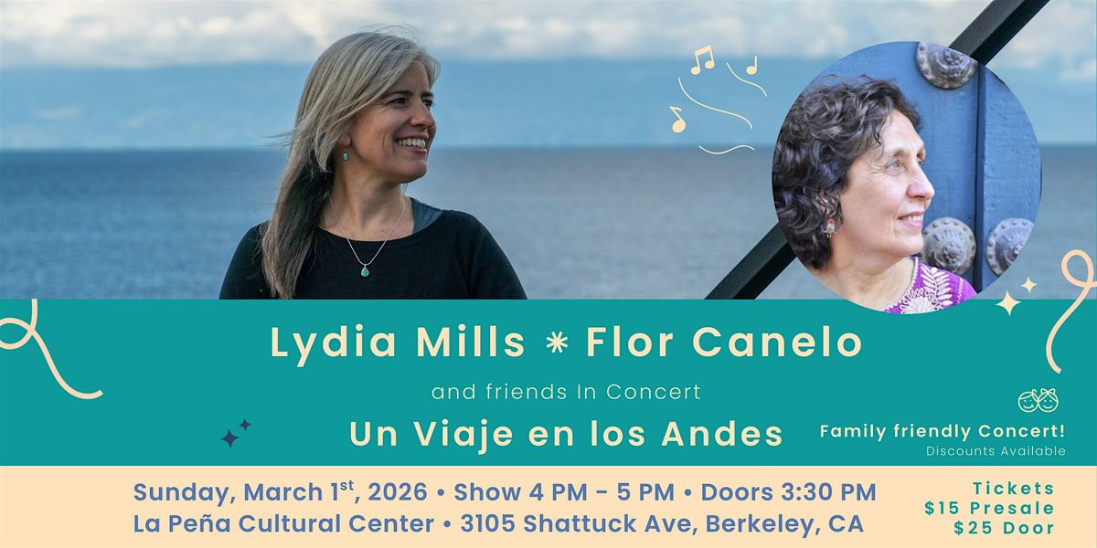 With Flor’s extraordinary performance, her fingers dancing along the piano keys, together with Lydia’s sweet vocals, and special guests on a variety of traditional South American instruments, this will be an afternoon you don’t want to miss!