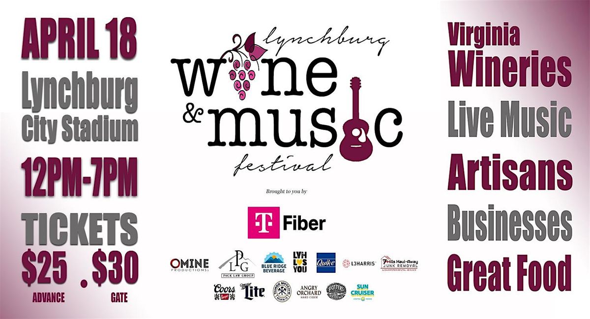 Kick off the Spring season in style with the Lynchburg Wine & Music Festival! Now in its 15th year, this outdoor event is set to rock the Lynchburg City Stadium Event Complex on Saturday, April 18th, from 12pm to 7pm.