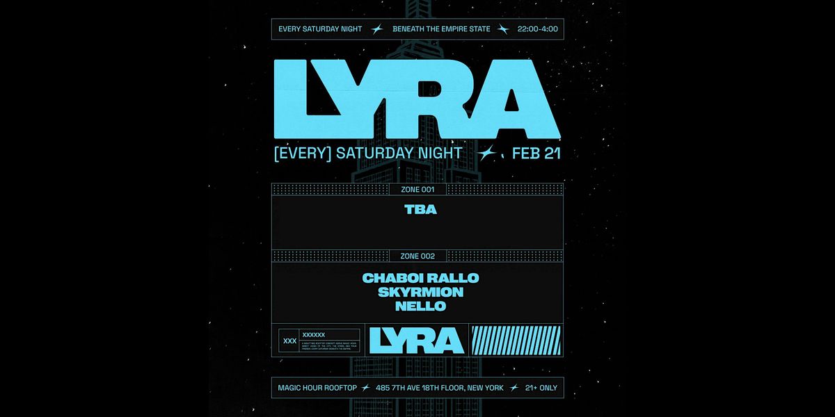 Introducing Lyra - a new rooftop party concept redefining Saturday nights in NYC. Perched beneath the Empire State Building with a retractable roof and panoramic skyline views, Lyra delivers two immersive zones of high-energy sound and atmosphere.