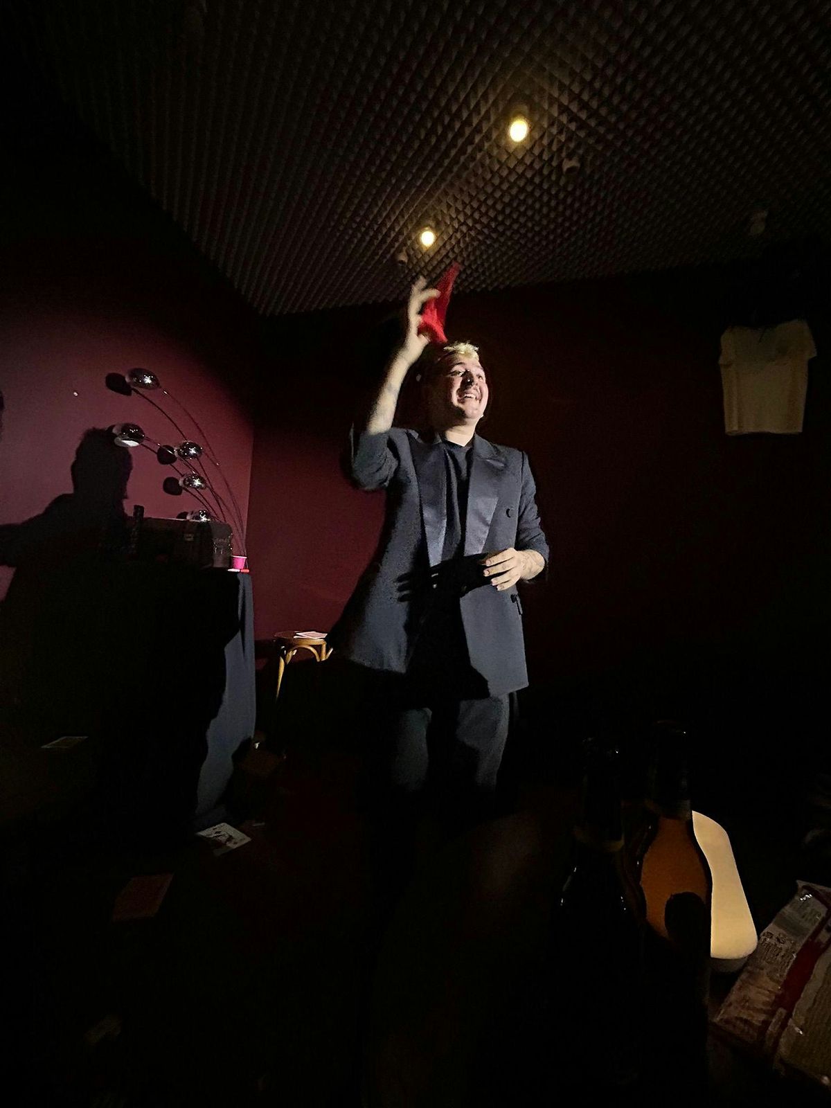 Concebut per a només 45 persones, l’aforament reduït crea un ambient càlid i proper que permet viure la màgia d’aprop de veritat: les cartes canvien a les teves mans, els objectes desapareixen davant teu i cada detall es converteix en una sorpresa compartida. Aquí no hi ha distància entre artista i espectador; formes part del misteri.