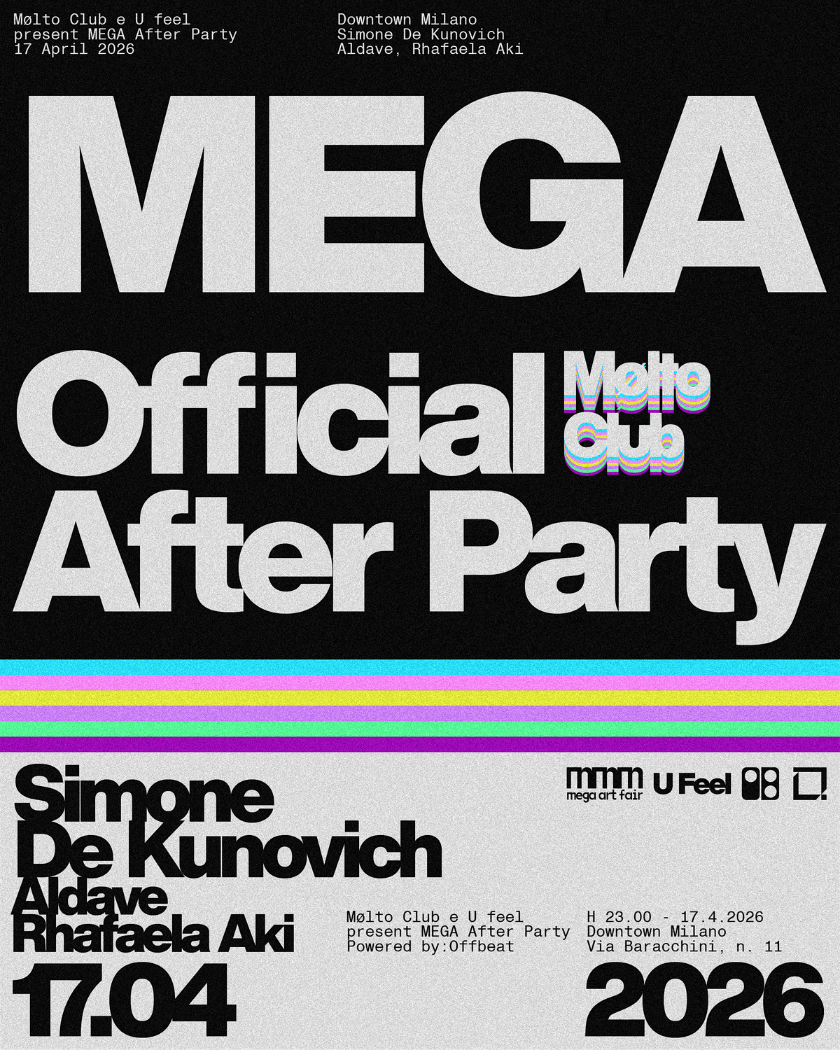 Offbeat presents a special event bridging the art system and high-end clubbing: on Friday, April 17 2026, Downtown Milano will host the official MEGA Art Fair After Party as part of the Mølto Club format.