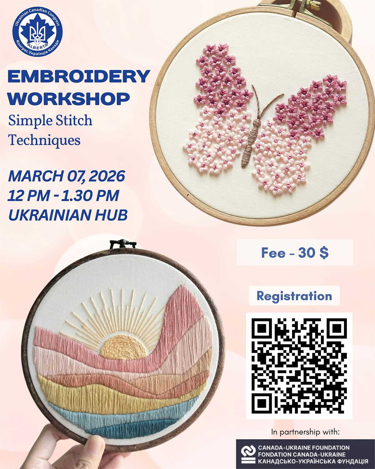 Запрошуємо на майстер-клас із вишивки, де дорослі та діти від 9 років зможуть познайомитися з основами ручної вишивки та створити власну декоративну роботу.