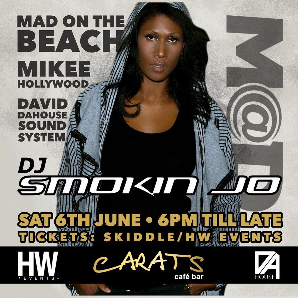 M@D Mikee Hollywood & David Da House proudly present global sensation Smokin Jo playing live at Carats Cafe on Southwick Beach on Saturday 6th June!!Artists