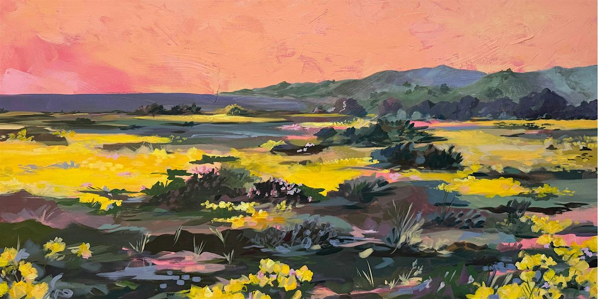 “Destination Superbloom” marks the 14th year that Cara Kozik has lived in Pacifica. She is continually inspired by the outlook from her kitchen window onto Mori Point, known for its electric yellow blanket of wildflowers in spring. Her Coastside is a dreamland in costume.