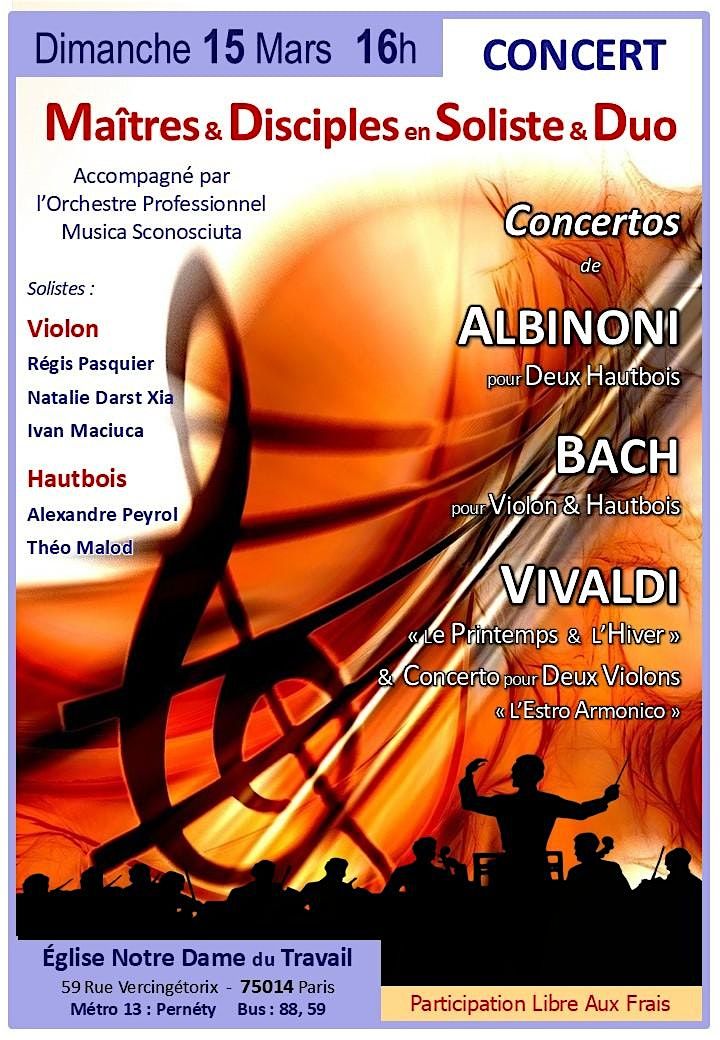 Disciple : Théo Malod Hautbois : Né en 2007, commence le hautbois à 6 ans. Depuis 2017, il est en cycle professionnelle dans la classe d’Alexandre Peyrol. Se produit en concert depuis tout petit et avec orchestre en tant qu’hautbois solo. En 2019 lauréat du prix jeunes musiciens de l’Aube.