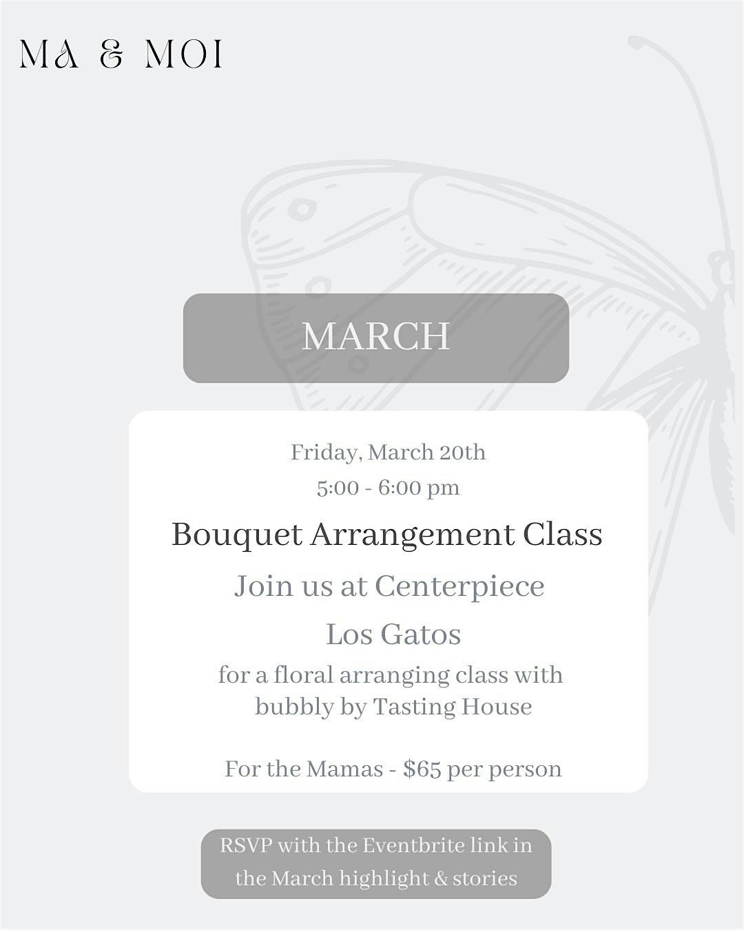 Join us for a Bouquet Arrangement Class at Centerpiece Los Gatos with bubbly generously donated by The Tasting House💐🥂