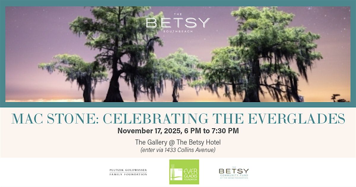 Hosted by Lesley Goldwasser, curator and co-owner The Betsy-South Beach in partnership with the Everglades Foundation