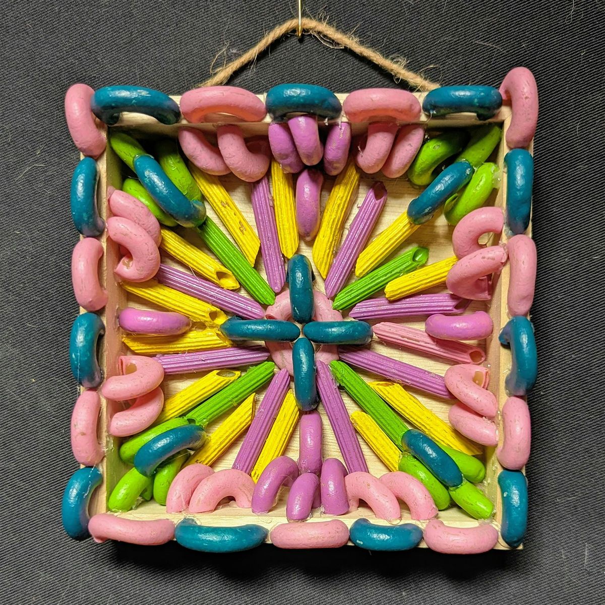A favorite childhood craft with a grown-up twist! Come decorate a 5 x 5 inch shadowbox with vibrant painted pasta of various shapes arranged in a beautiful mandala.