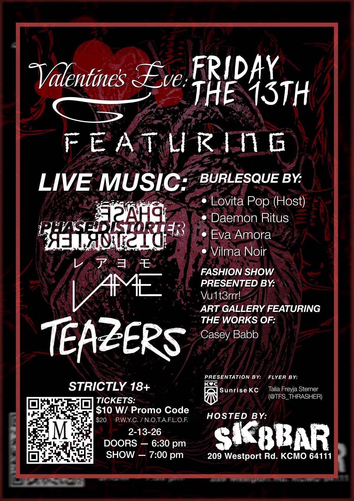 Live music, burlesque, fashion, and art is coming to Sk8bar just in time for V-Day on Friday the 13th! Will we see you there? (18+ ONLY)