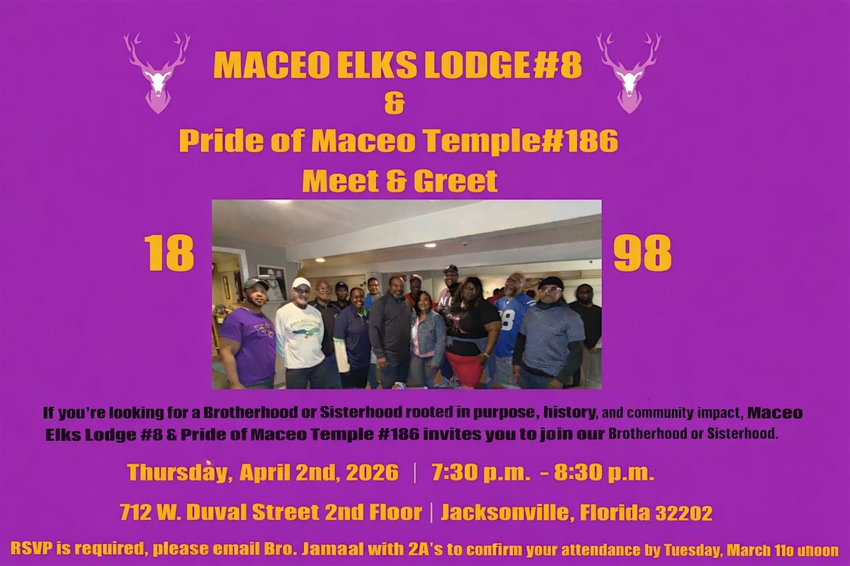 Join Us for the Maceo Elks Lodge#8 & Pride of Maceo Temple#186 Meet & Greet!