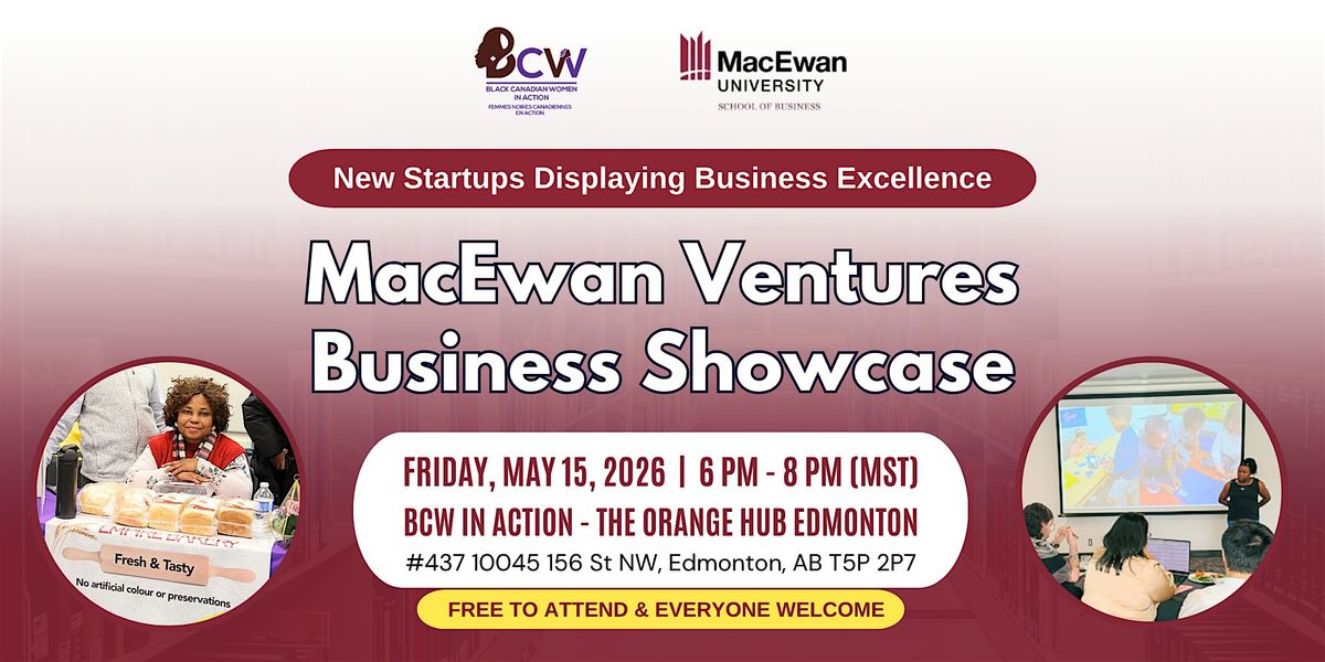 The MacEwan Ventures Business Showcase is the culminating event of the MacEwan Ventures program, where participants present their business ideas and ventures after weeks of development and mentorship. This showcase provides a platform for aspiring entrepreneurs to pitch their concepts, demonstrate their progress, and connect with peers, supporters, and the broader community. Attendees will experience innovative ideas, celebrate participant achievements, and support emerging businesses as they compete for cash prizes and take the next step in their entrepreneurial journey.
