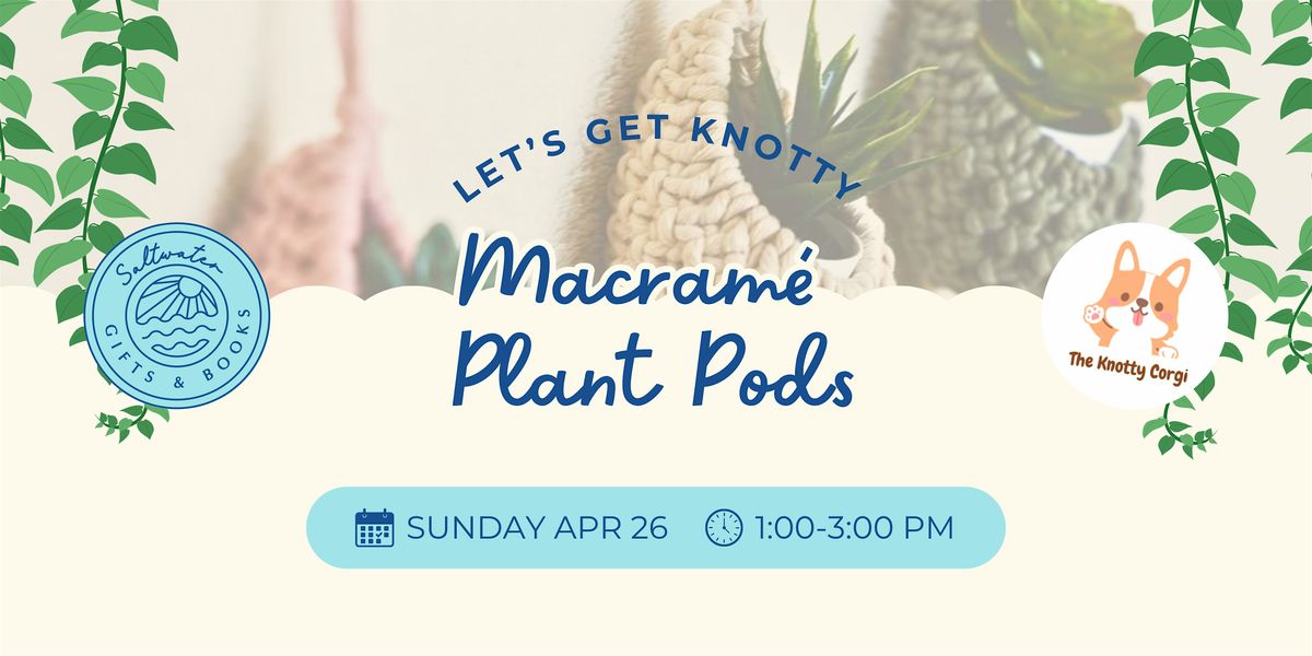 Join Jasmine of The Knotty Corgi for a relaxing, beginner-friendly workshop where you'll learn how to create your own macramé plant pod — perfect for holding succulents or air plants. We'll guide you step-by-step through the basic knots needed to craft a beautiful hanging pod you can take home and enjoy. No experience needed — just bring your creativity!
