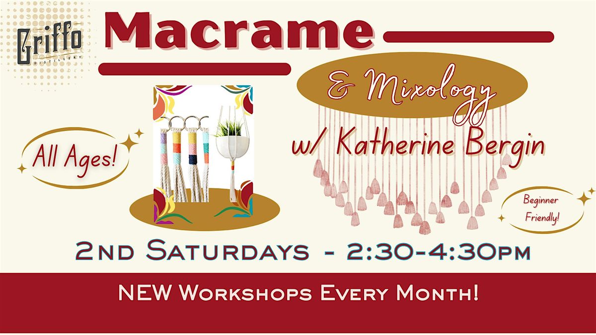*Join us for a creative and relaxing afternoon at our Mixology & Macramé Workshop! Learn to craft different macramé pieces of your own while enjoying a drink in our cozy Barrel Room @ Griffo Distillery. This is the perfect opportunity to unwind, connect, and take home a handmade creation! See you Saturdays!