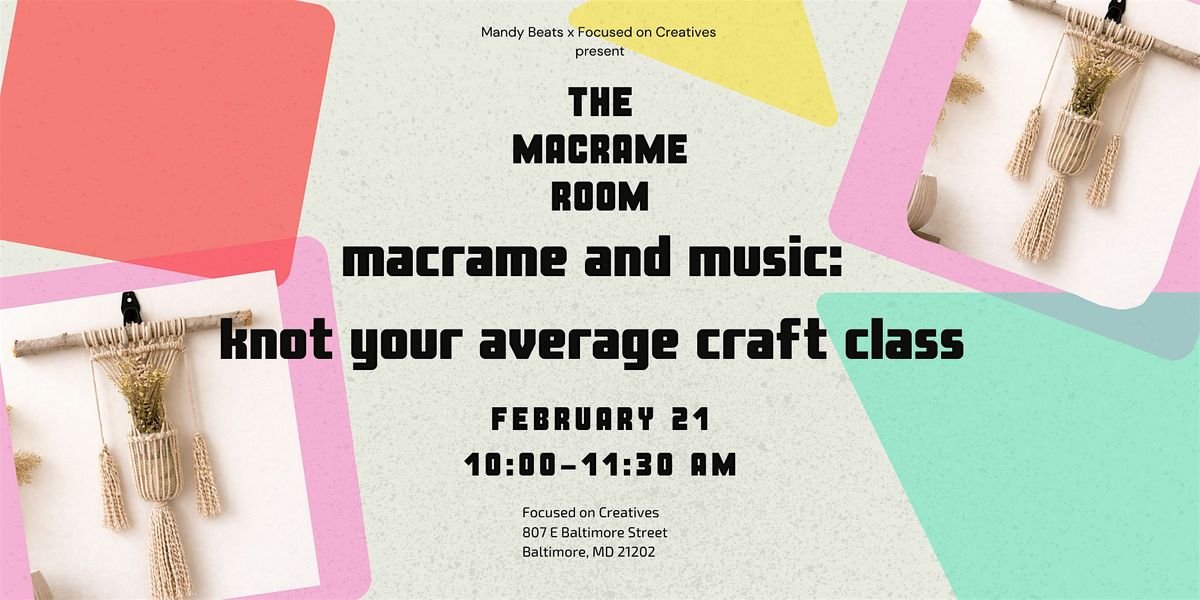 All supplies are included, a live DJ will set the vibe with chill house music, and the energy is relaxed, creative, and fun. Come hang, make something cool, and take home a new macrame stick and jar hanging for your space.