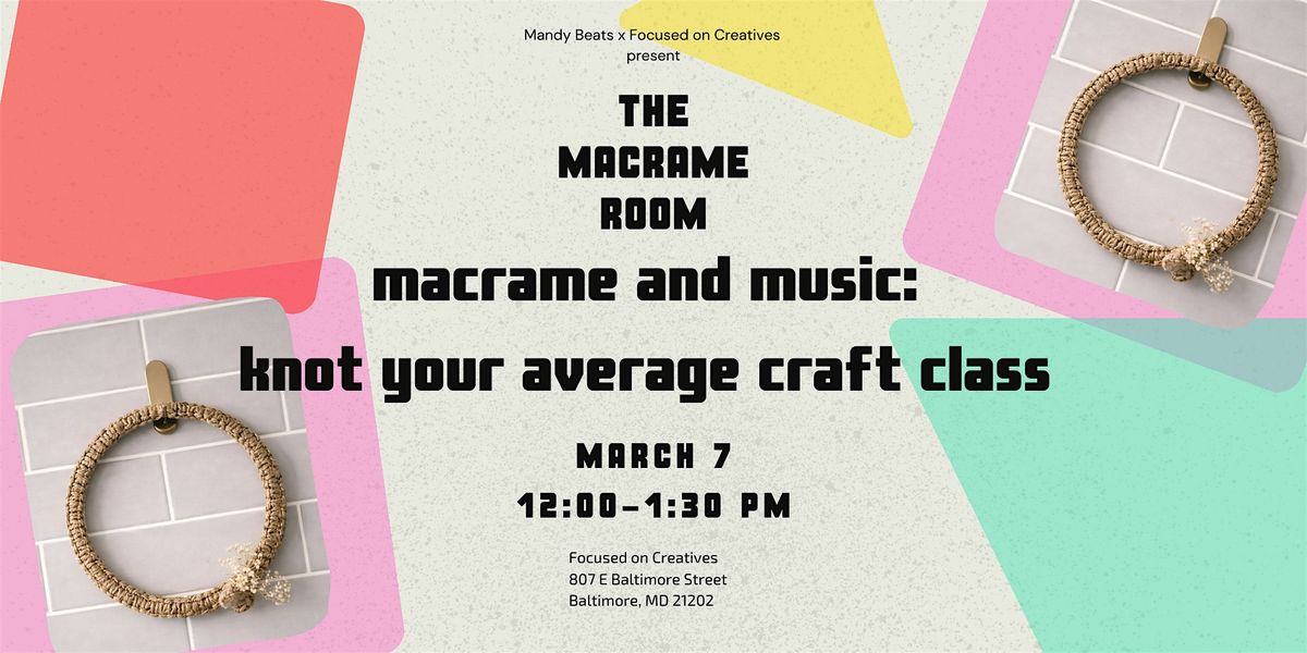 Join us in the Macramé Room for a hands-on class led by Mandy, the creator of the space, where you’ll learn the basics and make a wreath to take home.
