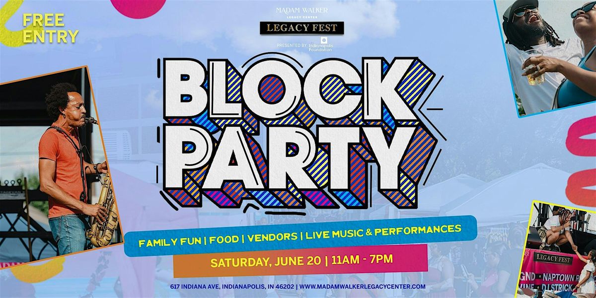While Saturday’s block party is free to attend, Legacy Fest is the Madam Walker Legacy Center’s signature fundraiser, and guests can support the Center’s mission by making a donation when registering through Eventbrite.