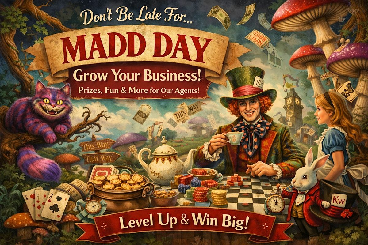 MADD Day is one of Keller Williams’ most powerful productivity events — a focused, high-energy training experience designed to help agents master the daily activities that drive real results. Whether you’re building momentum, rebuilding your pipeline, or pushing to your next level, MADD Day gives you the tools, models, and accountability to operate like a true Mega Agent.