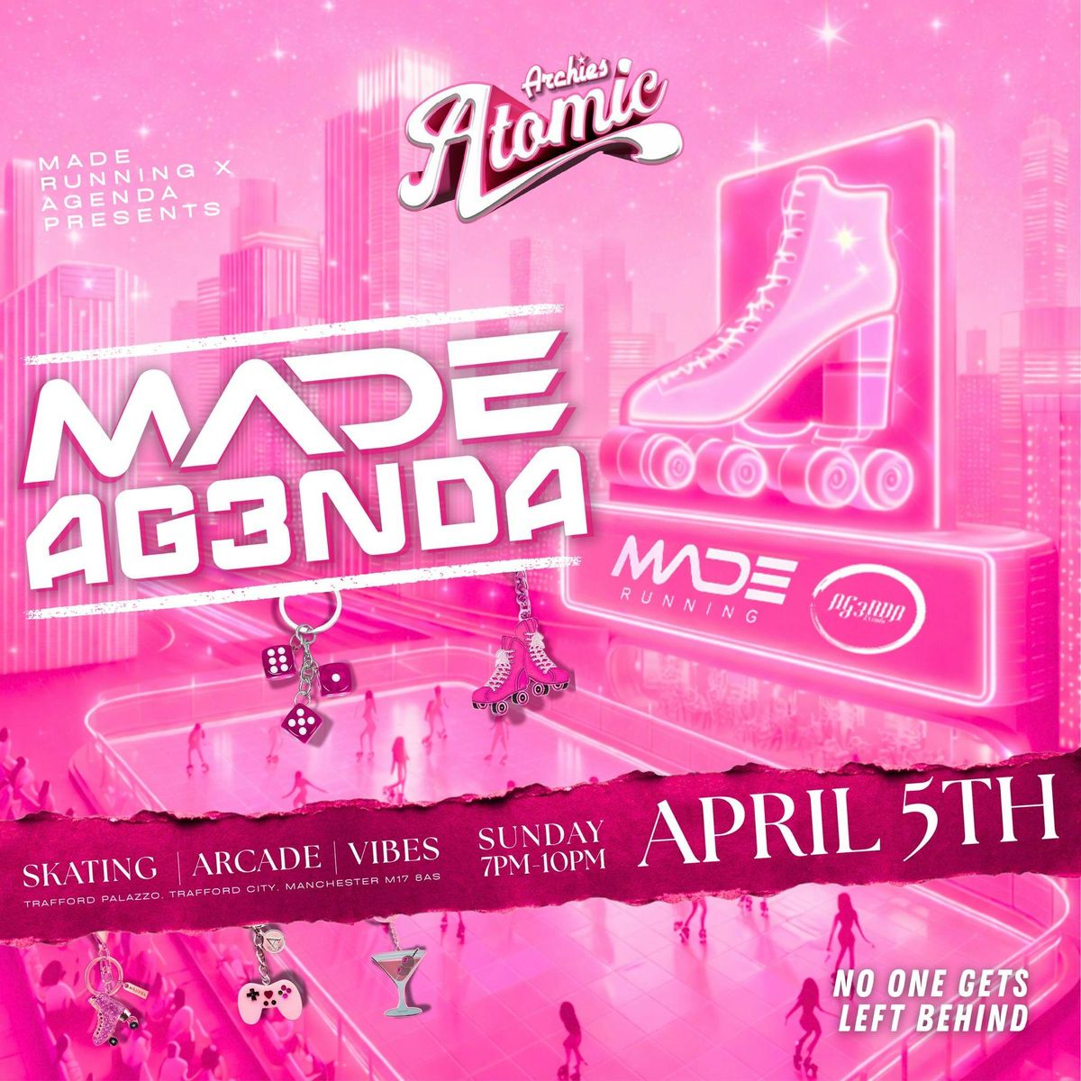 Get ready for an electrifying night of wheels, lights, and nonstop fun at Made Agenda — the ultimate skating and arcade takeover hosted by Agenda Events and Made Running 🛼👾✨Step into a high-energy atmosphere where retro vibes meet modern hype. Glide across the rink to a live DJ spinning crowd-favorite tracks, challenge your friends on classic and next-gen arcade machines, and fuel up with snacks and drinks as you soak in the neon glow. Whether you’re a seasoned skater, a casual cruiser, or just here for the games and good company, this event is built for pure enjoyment and community connection 💫