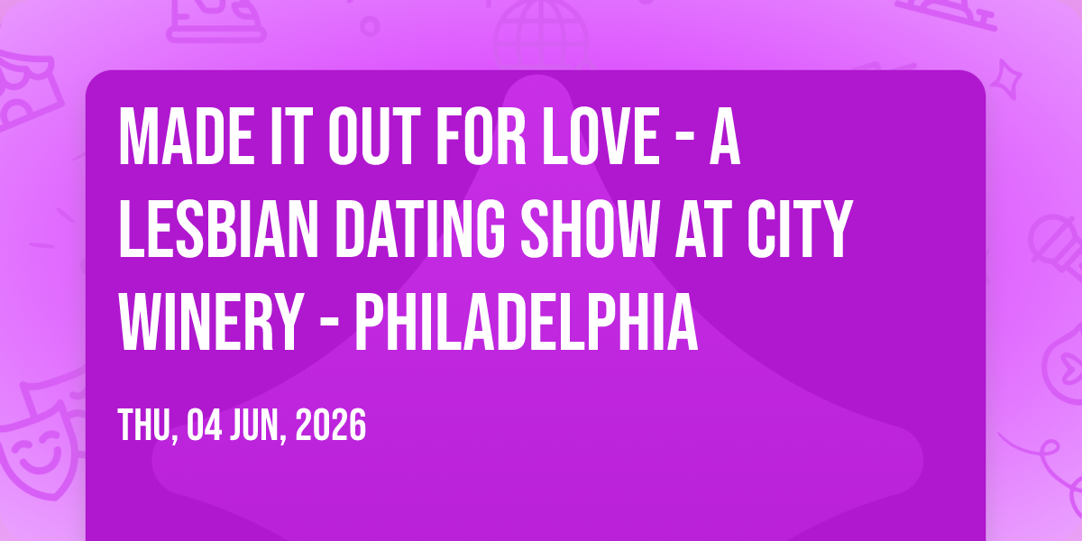✨ Experience the magic of Made It Out for Love - A Lesbian Dating Show at City Winery - Philadelphia, where moments become memories that last a lifetime! 🏛️ The iconic City Winery - Philadelphia in Philadelphia, PA sets the perfect stage for an unforgettable celebration on June 4th, 2026 at 07:30 PM. 🌟 It's been a curated experience that brings together the best of entertainment and innovation, creating an atmosphere of wonder and excitement. From the moment you arrive, you'll be immersed in a world where the ordinary transforms into the extraordinary. 🎊 Book early to secure your place in what promises to be an event that will be talked about for years to come!