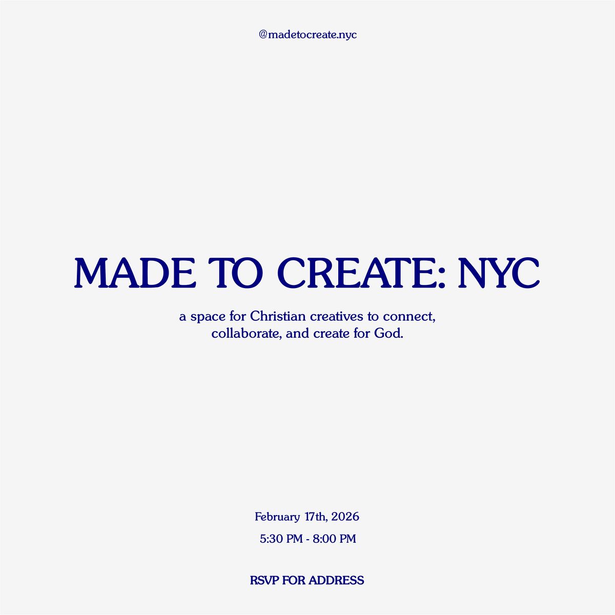 Made To Create: NYC is a community for Christian creatives to connect, collaborate, and create for God. Join us for our first meetup!