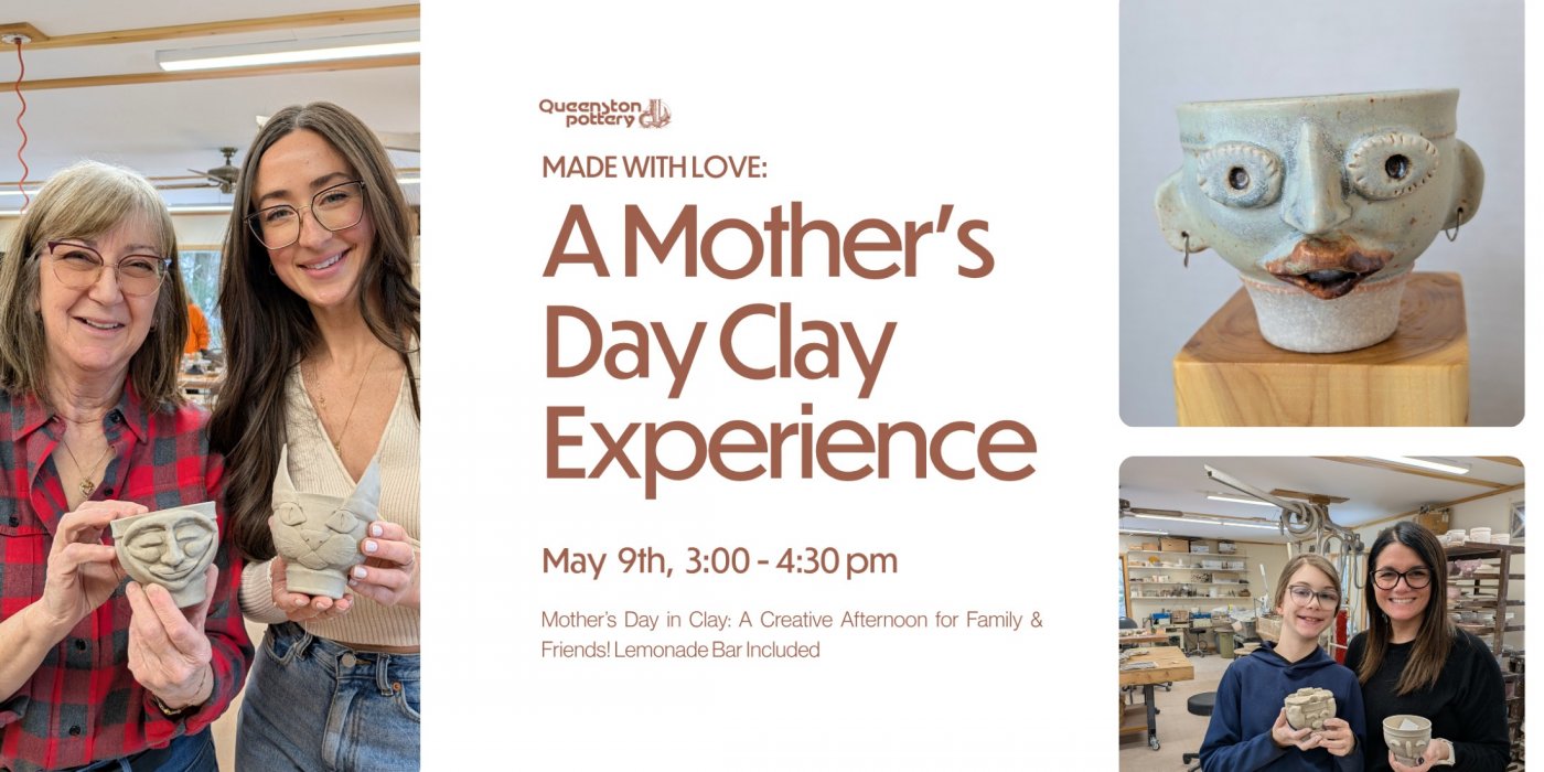 Join us at Queenston Pottery on Saturday, May 9, for a special Mother’s Day clay workshop designed for families, best friends, and creative kids (ages 12+). Whether you’re planning a thoughtful outing with Mom, a multi-generational afternoon, or simply time together doing something creative, this 90-minute session is a beautiful way to connect.