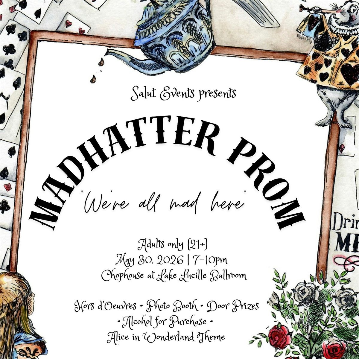 Step into a world of whimsy, wonder, and delightful madness at our Alice in Wonderland–themed Adult Prom, open to the community and hosted at the enchanting Chop House of Lake Lucille in Wasilla, Alaska.