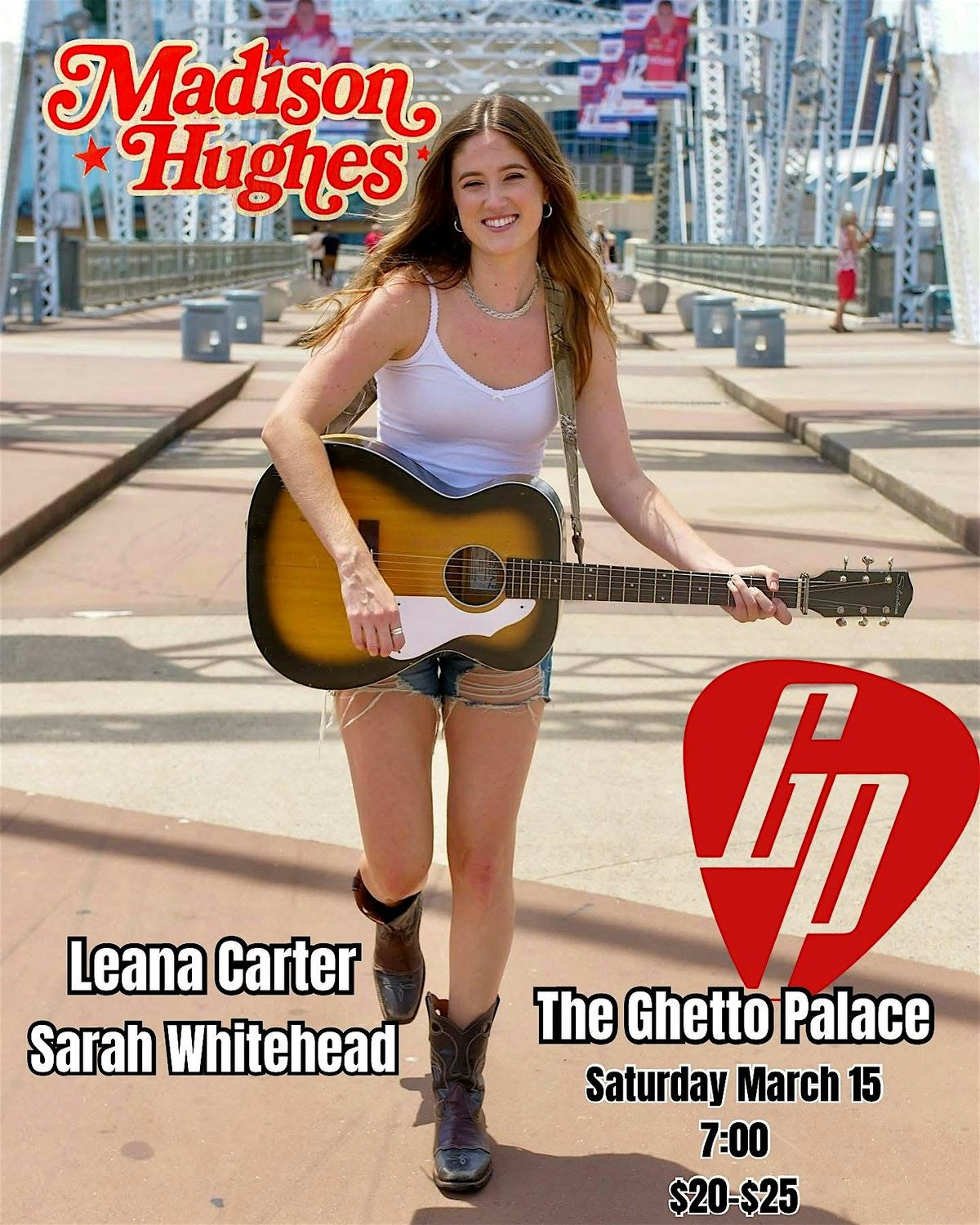 Madison Hughes with special guests Leana Carter and Sarah Whitehead come to The Ghetto Palace for a great night of music!