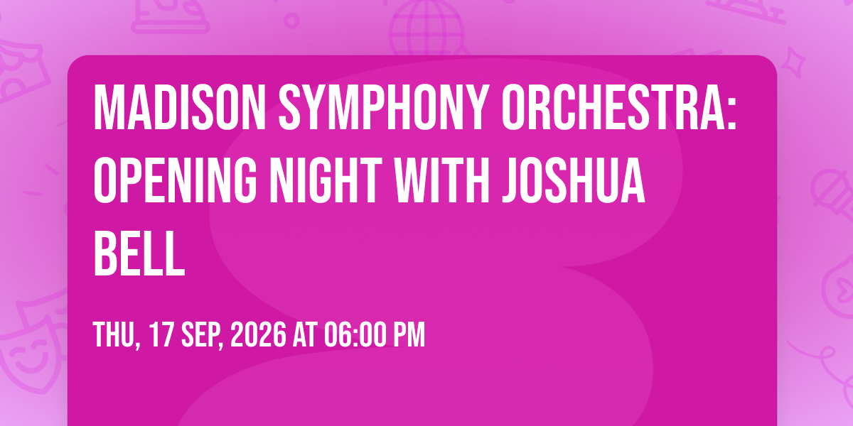 🌟 Step into a world of wonder at Madison Symphony Orchestra: Opening Night with Joshua Bell, where extraordinary moments await! 🏛️ Located at Overture Hall At Overture Center for the Arts in dynamic Madison, WI, this event will become the talk of the town. 📅 Join us on September 17th, 2026 at 06:00 PM for a celebration that defies the ordinary. ✨ This curated experience brings together the best of entertainment, culture, and community spirit. Every detail has been thoughtfully planned to ensure an unforgettable experience for all our guests. 🎯 Take advantage of this opportunity to be part of something special. 🎊 Early registration is recommended as space is limited!http://maps.seatics.com/OvertureHallAtOvertureCtr_Endstage_2023-11-28_2023-11-28_0850_11282023_100134_SVGC_tn.png