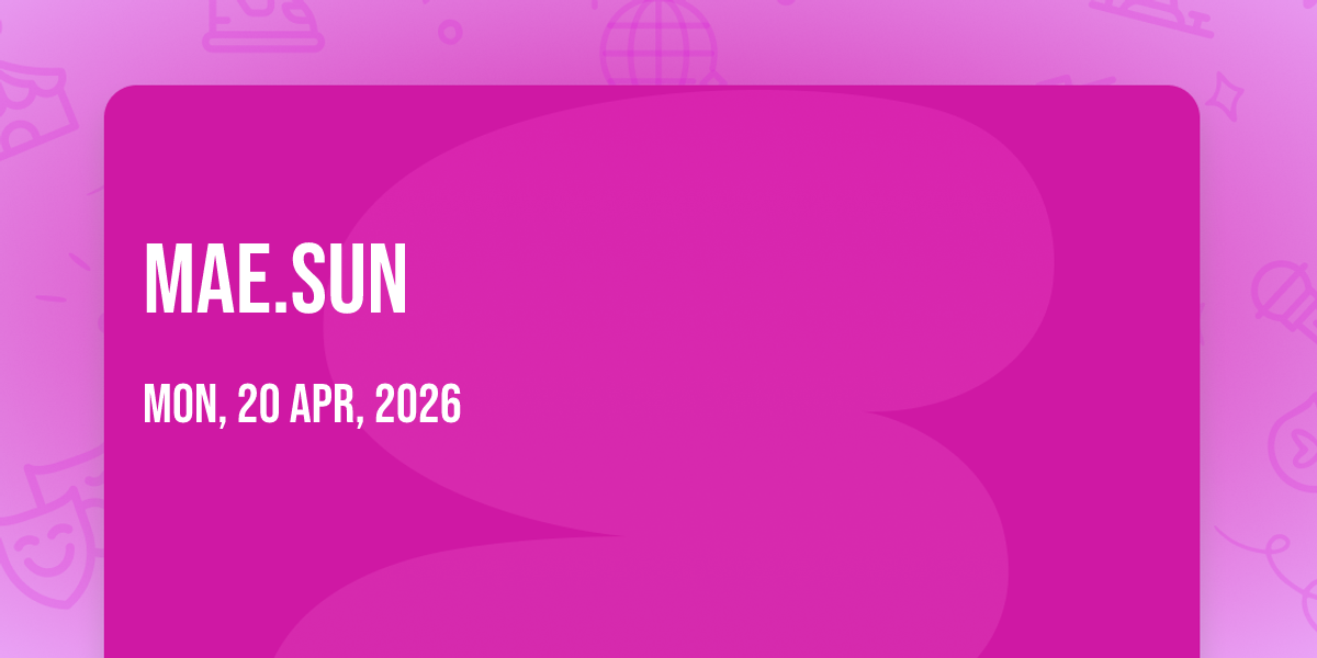 📍 Location: 34.0487, -118.234🎉 Welcome to MAE.SUN, where the impossible becomes possible and dreams take flight! 🏛️ Join us at Moroccan Lounge in the heart of Los Angeles, CA for an event that will redefine your expectations. 📅 On April 20th, 2026 at 01:30 AM, witness the transformation of space and time into something truly magical. ✨ It's a curated experience combining the best of innovation, entertainment, and community spirit, creating moments that will be remembered for years to come. Whether you're a first-time visitor or a seasoned enthusiast, prepare to be amazed. 🎊 Book now to ensure your place in this unforgettable experience!