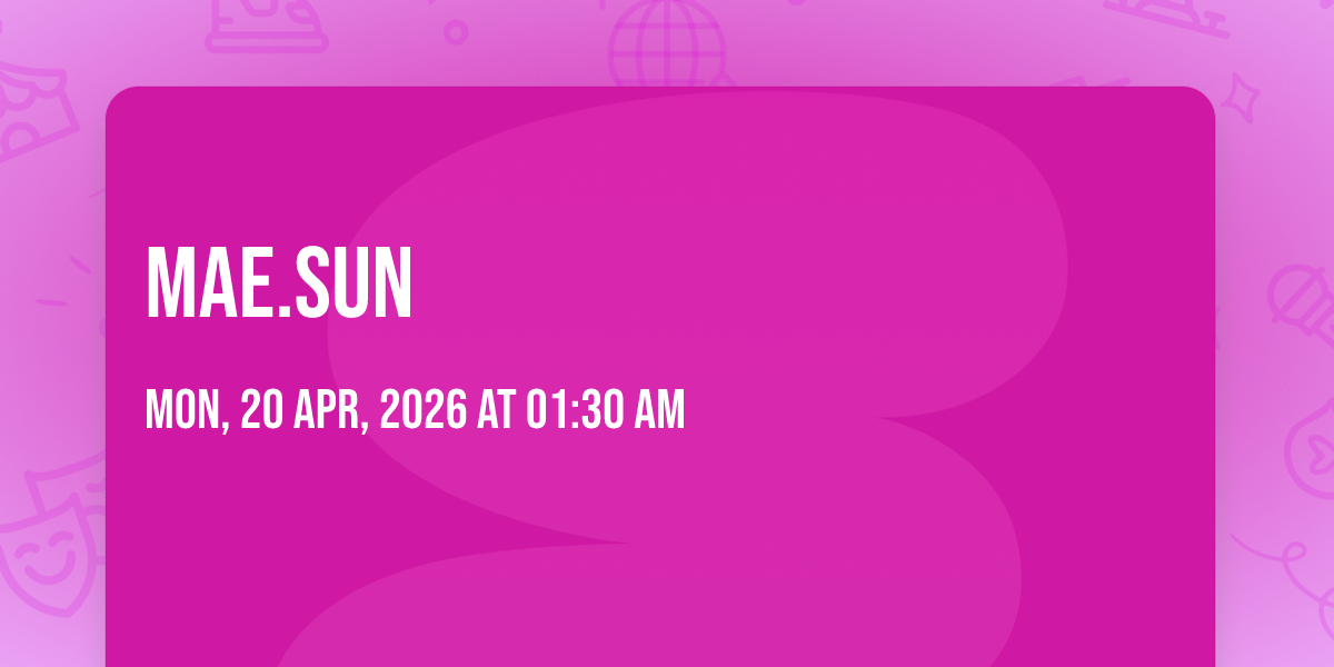 📍 Location: 34.0487, -118.234🎉 Prepare to be amazed at MAE.SUN, the most anticipated gathering of the season! 🌟 Set against the stunning backdrop of Moroccan Lounge in vibrant Los Angeles, CA, this event promises to redefine your expectations. 📅 Mark your calendars for April 20th, 2026 at 01:30 AM and get ready to immerse yourself in an atmosphere of wonder and excitement. ✨ From the moment you arrive, you'll be transported into a world where memories are made and stories come alive. They have crafted an experience that perfectly harmonizes entertainment, innovation, and community spirit. 🌈 Join us as we create moments that will be discussed for years!