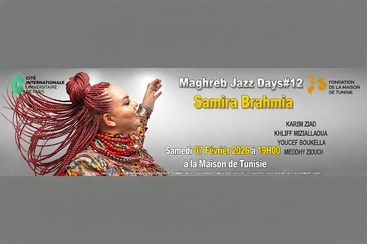 Ne manquez pas cette soirée unique en présence de SAMIRA BRAHMIA lors des Maghreb Jazz Days#12 ! Une expérience en personne pour vibrer au son des rythmes jazz mêlés aux influences maghrébines. Viens profiter d'un moment convivial et chaleureux, parfait pour les fans de musique live et de découvertes musicales. Ambiance assurée, n’hésite pas, ça va être top !