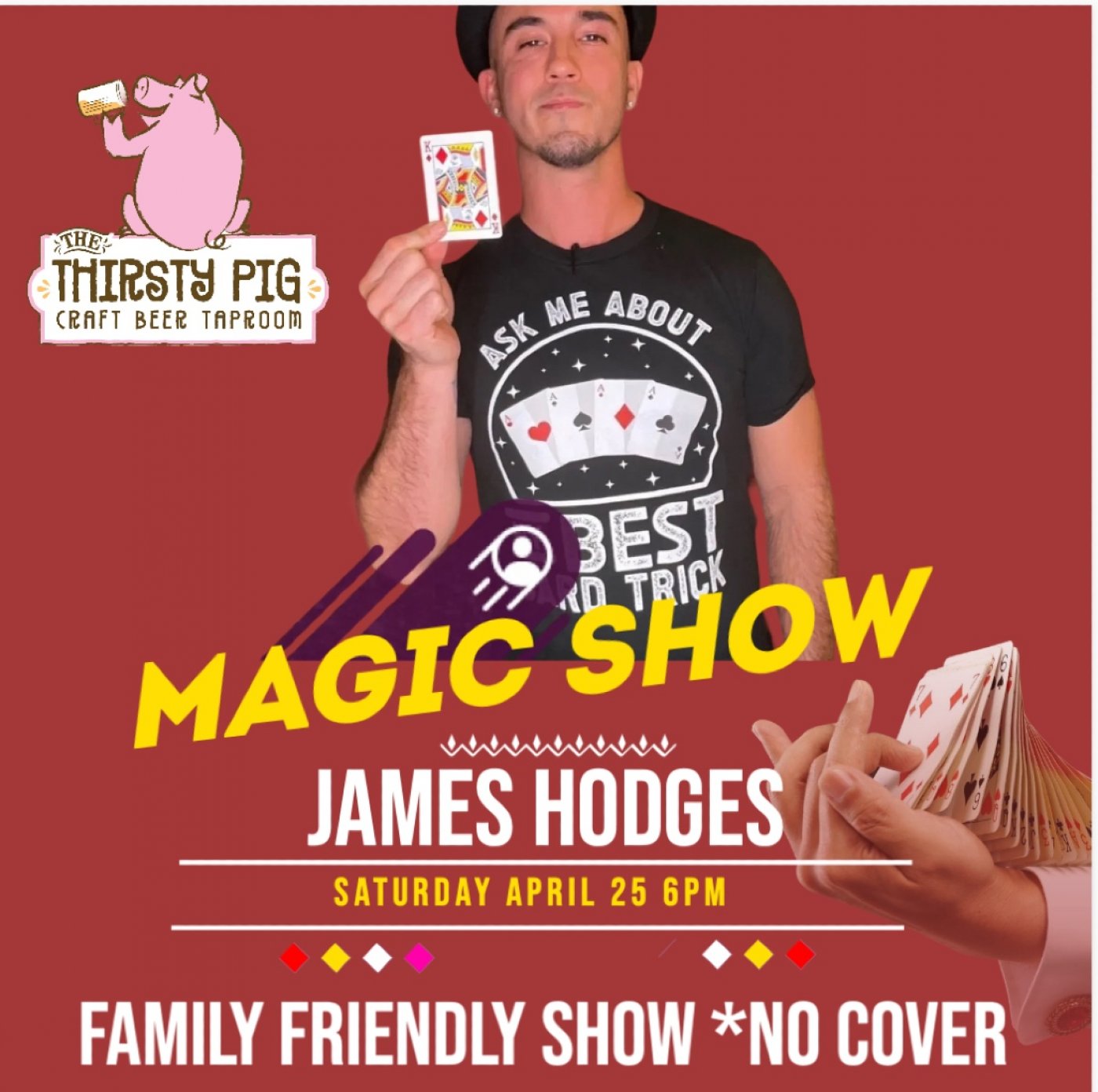 This is a family friendly show and the food truck will be cooking from 4-8. Drinks served 3-9. Pet friendly venue! Bring the family for this opportunity to see magic in an intimate environment.