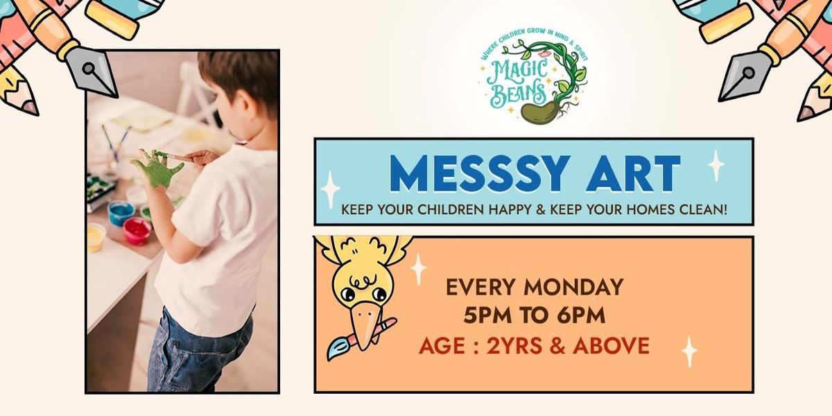 Messy play is the open ended exploration of materials and their properties. It allows children to use their natural curiosity and engage their senses at the developmental level that is appropriate to them. They learn foundational cognitive principles as they exercise motor, language and social skills.