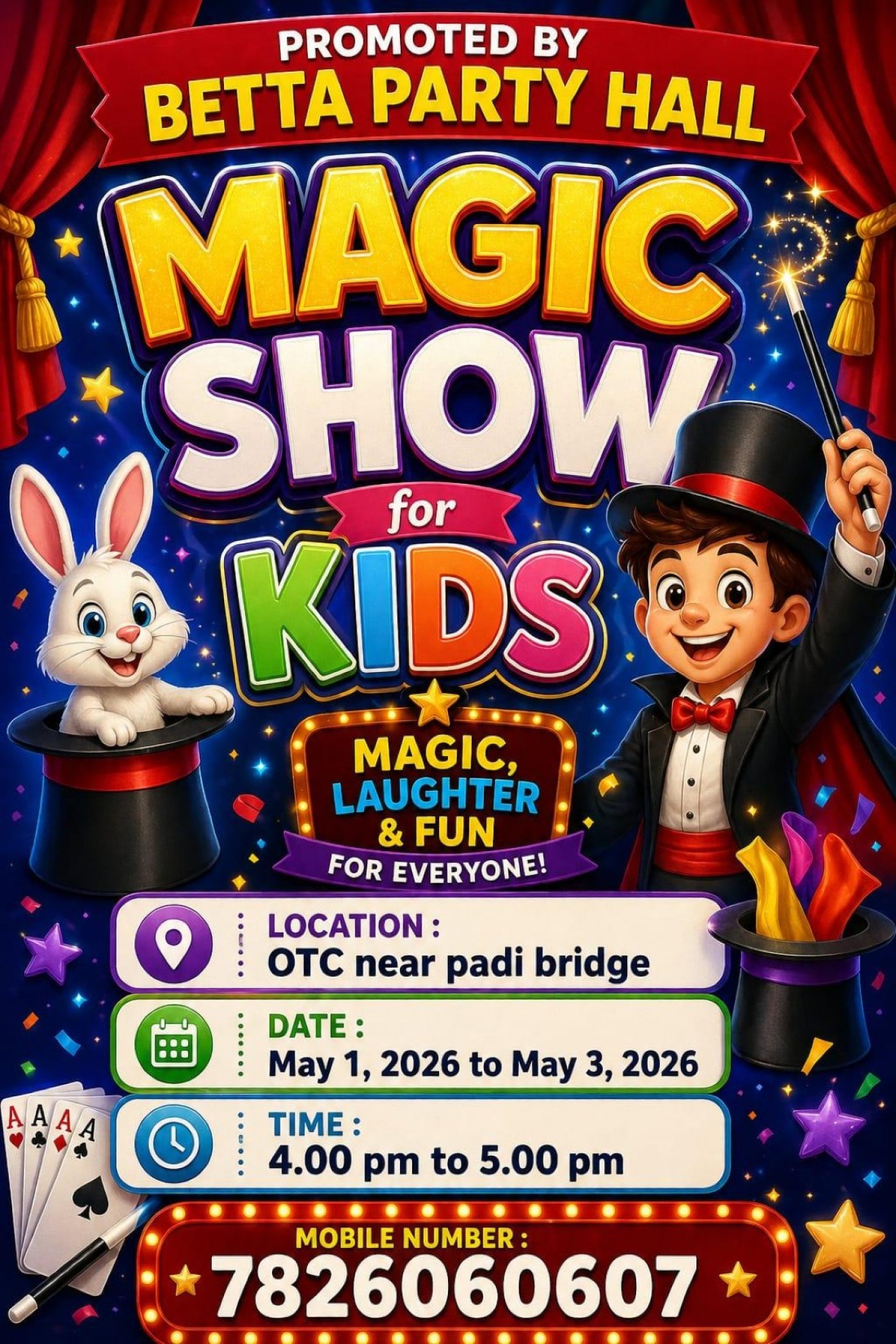 MAGIC SHOW - 4 PM to 5PM on May 1, 2026 - May 03, 2026 in OTC near Padi Bridge by Marlen Mahal
