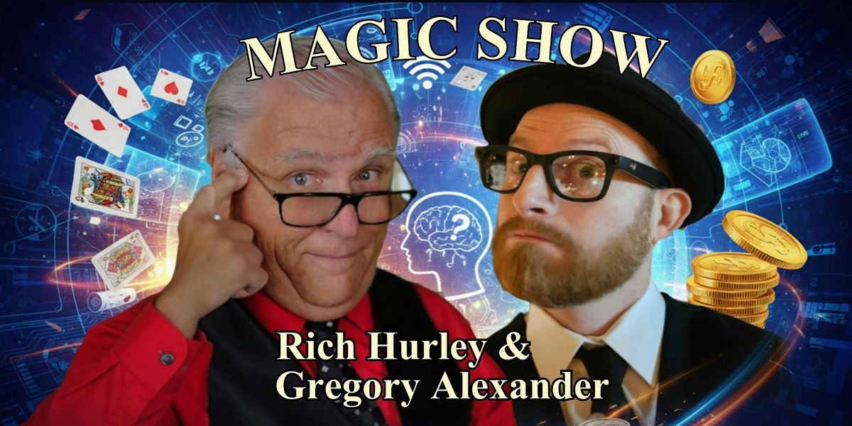 Info: Enjoy the magic from Rich Hurley & Gregory Alexander as seen at the world-famous Magic Castle in Hollywood! Their family friendly show includes amazing sleight of hand, mentalism and illusions.