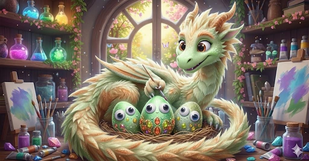 Using natural treasures, magical paints, shimmering powders, and secret hatching spells, each child will bring to life a stunning and mystical dragon egg to take home, ready to protect their dreams and spark the imagination long after the workshop ends.