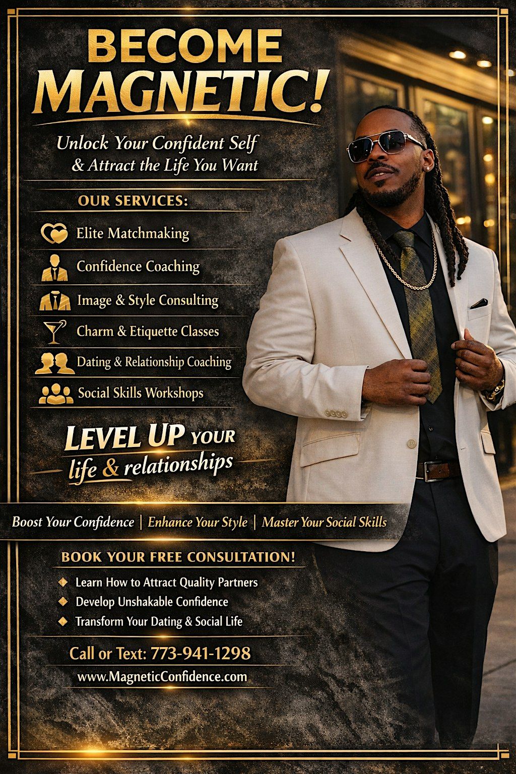 Participants will learn how to strengthen their self-image, improve the way they speak and carry themselves, develop stronger social and relationship skills, and move with greater purpose in dating, business, and everyday life. The workshop is not about pretending to be someone else — it is about unlocking the confidence, value, and power that already lives within you.