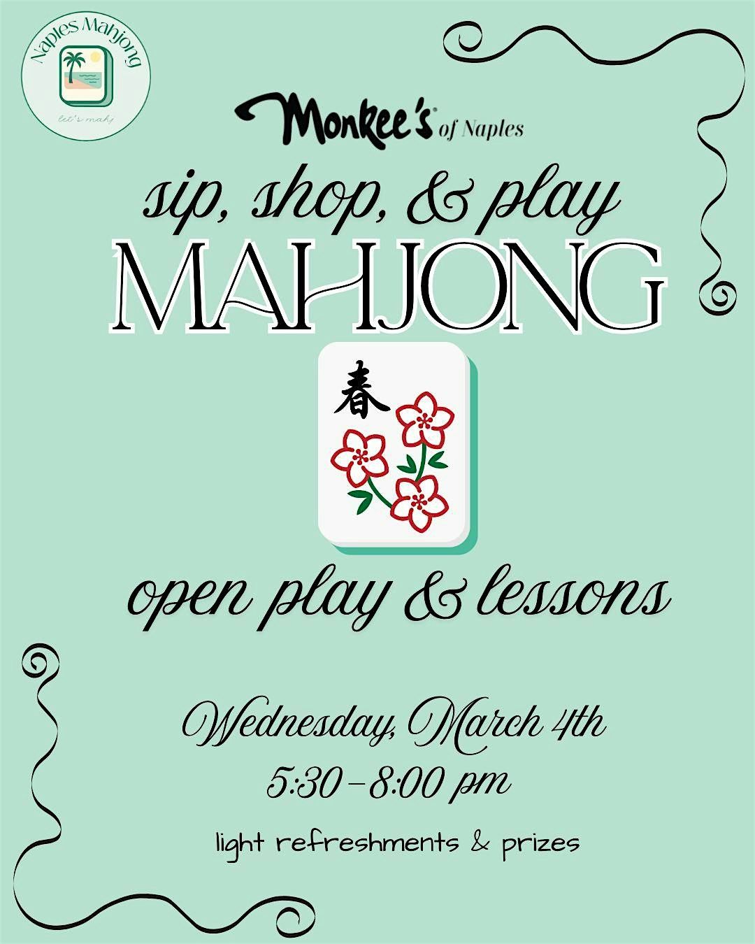 Join us for a fun Open Play event at Monkee’s in Naples — where mahjong meets boutique vibes. 🀄️💚