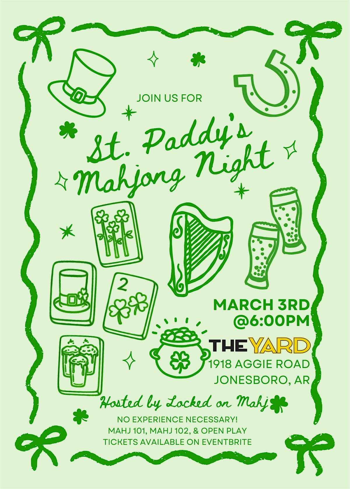 Join us March 3 for a festive St. Patrick’s Day–themed Mahjong Night at The Yard!