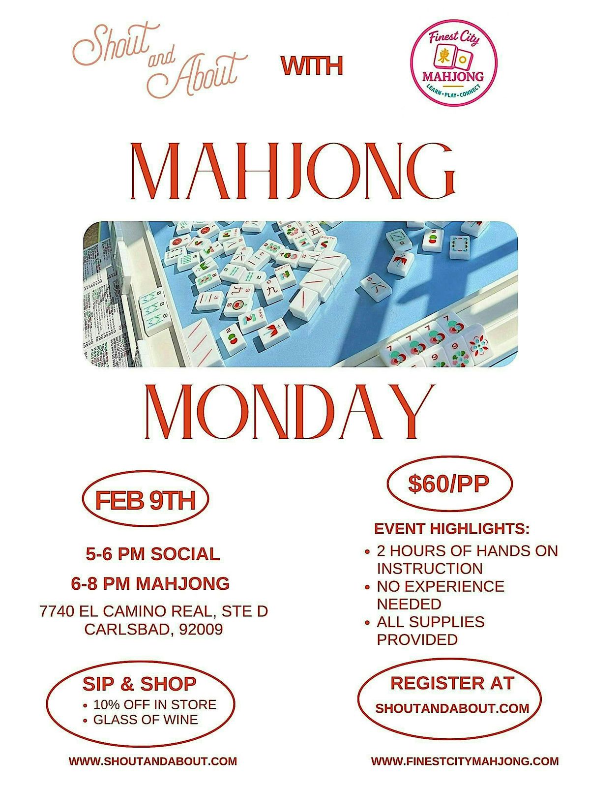 Ready to learn something new to kick off 2026? Join us in person for Mahjong Monday at the Beacon! Whether you’ve played before or are brand-new, the ladies at Finest City Mahjong will provide tiles and show you the ropes!