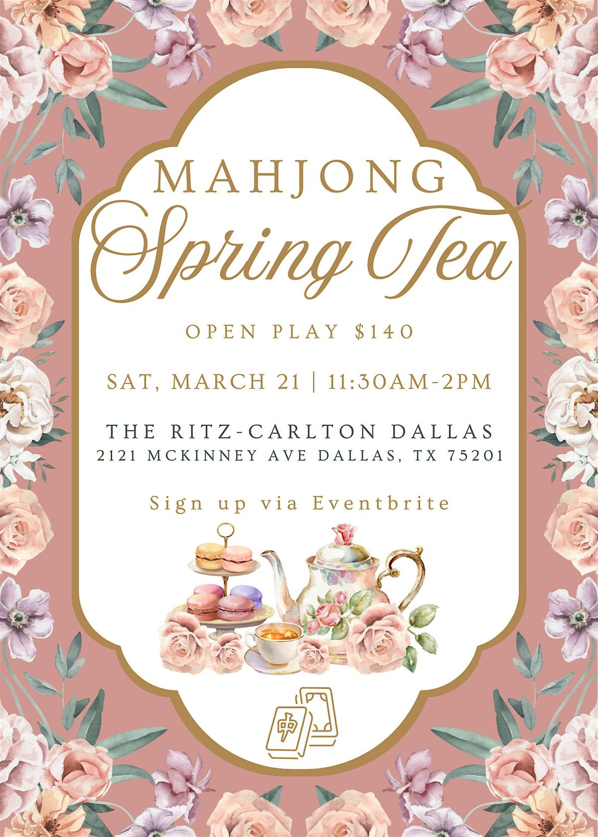 Ticket includes mahjong open play, all restaurant gratuities and fees, and the following menu: