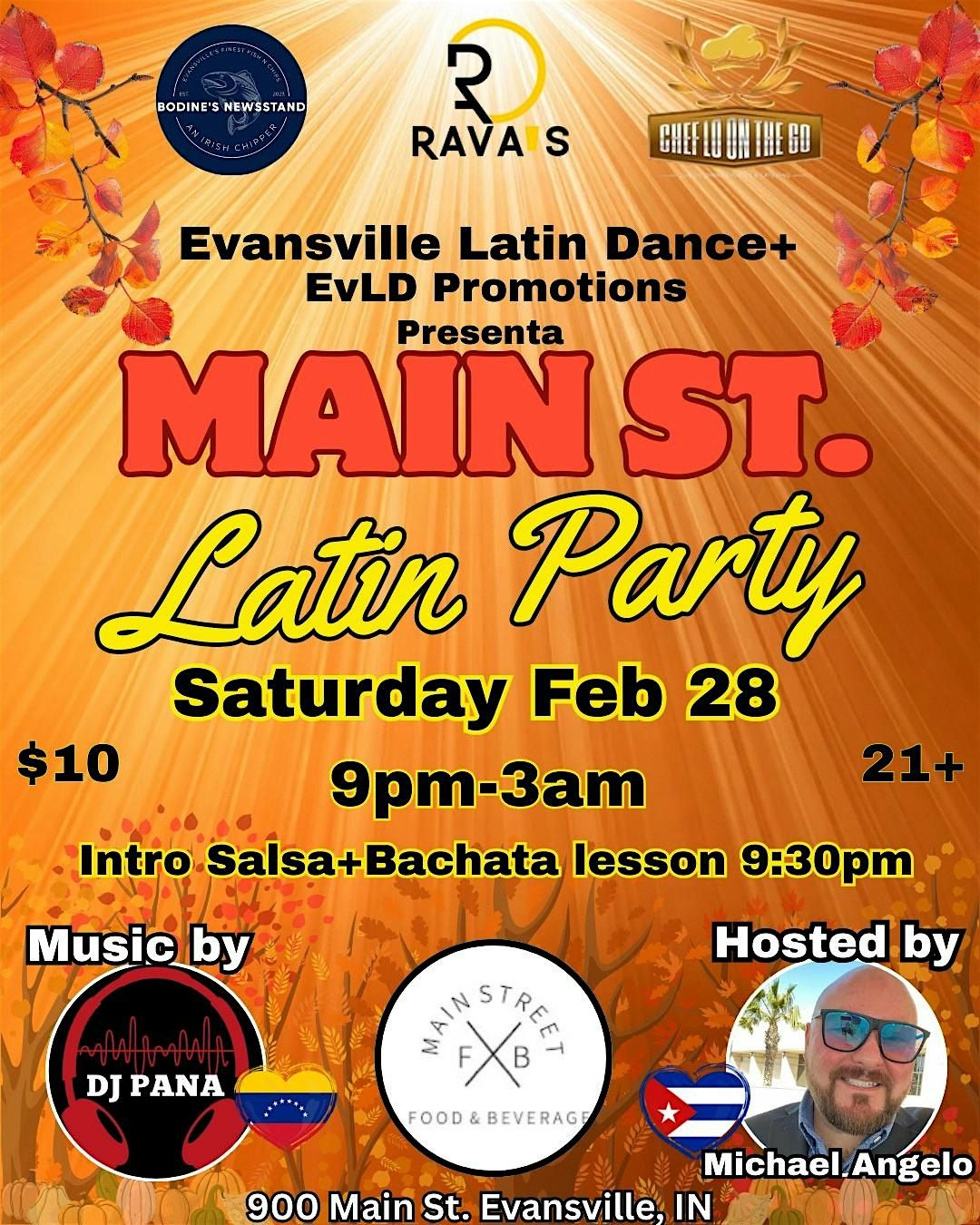 Evansville Latin Dance & EvLD Promotions proudly present the return of our Main Street Latin PartyNew year, same amazing vibe.The Night Begins EventBrite tickets dont count. $10 at ther door.
