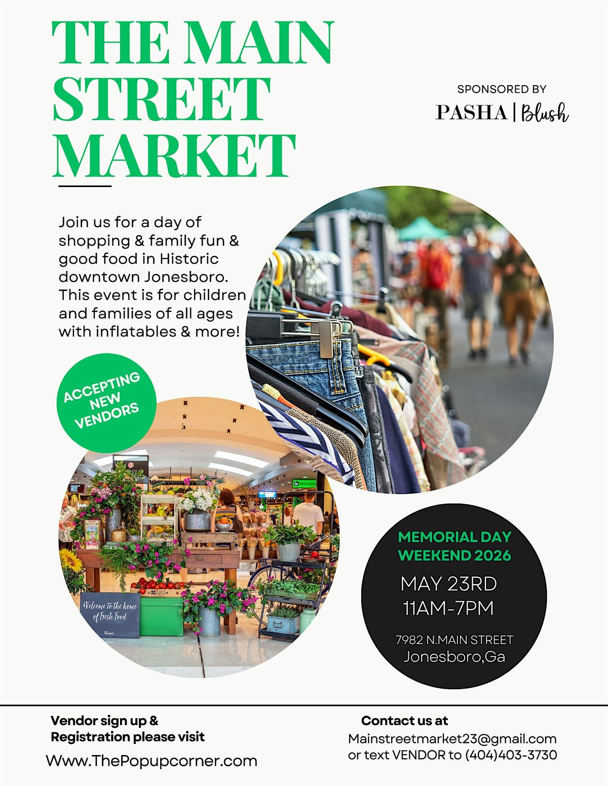 The Main Street Market is returning to Jonesboro this Memorial Day for a special community marketplace honoring our veterans, families, and the spirit of togetherness.