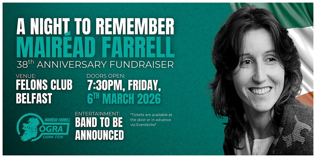 Join us at the Felons Club on March 6, 2026 at 7:30 PM for an evening of solidarity. Let's come together to honor the legacy of Mairéad Farell and her contribute to the struggle. !
