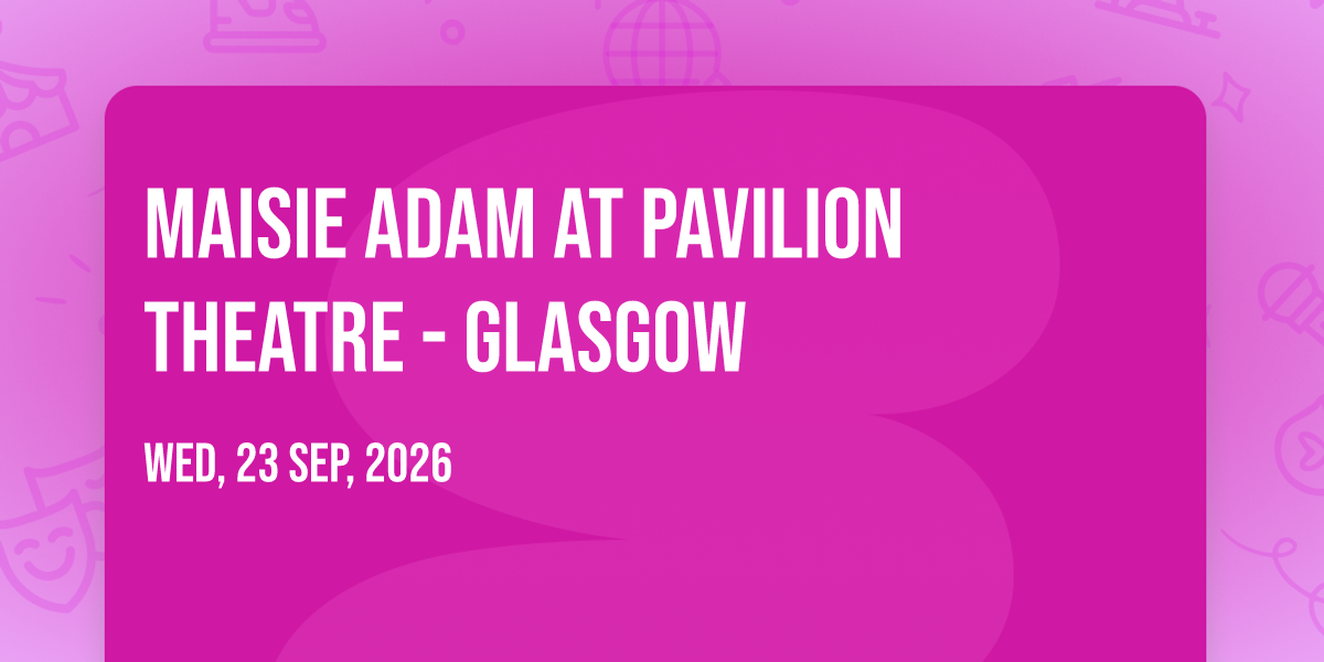 π Welcome to Maisie Adam at Pavilion Theatre - Glasgow, where dreams come alive and possibilities are endless! ποΈ Join us at Pavilion Theatre - Glasgow in the heart of Glasgow, SC for an event that defies expectations. π On September 23rd, 2026 at 07:30 PM, be part of something truly extraordinary as we bring together innovation, entertainment, and pure magic. β¨ Every aspect has been carefully designed to ensure an unforgettable experience for all our guests. Whether you're seeking adventure, inspiration, or simply a break from the ordinary, this event promises to deliver beyond your wildest dreams. π Prepare for a journey into the extraordinary!